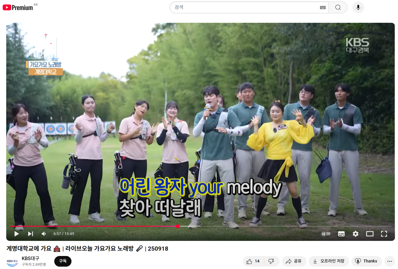 계명대학교 양궁부 선수 - 라이브오늘 가요가요 노래방 출연(KBS대구방송)
